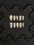 Modern press-on nails with metallic accents and a chic French-inspired design.