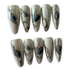 Futuristic press-on nails with metallic veins and bold black heart accents.