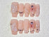 Romantic blush nails with 3D butterflies, pearls, and sparkling crystal accents for a dreamy fairy-tale look.