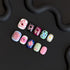 Playful press-on nails with a mix of vibrant colors and whimsical patterns for everyday charm.