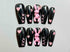 Edgy black nails with pink hearts and a bold 3D bunny charm.